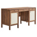 Elevate your home office or study area with the Capri Desk, a sleek and functional workspace solution. This desk features three full glide drawers and two concealed storage cabinets with linen-textured doors with soft-close hinges. Crafted with durable particleboard and MDF, it's finished with a wood grain laminate that adds a touch of organic aesthetics to its modern desk design. It's perfect as a computer desk or writing desk with drawers. Capri also doubles as a versatile vanity desk, providing a chic place to get ready in the morning. Its narrow design makes it an aesthetic desk that fits well in minimalist or mid-century modern interiors. This modern office desk is designed with non-marking glides to protect your flooring, a considerate addition to any room. Whether used in an office or a small space dressing table in your bedroom, the Capri Desk is a testament to modern craftsmanship and design, blending practicality with a clean, modern office desk aesthetic. Weight Capacity: 200 lbs.