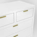 In addition to the storage benefits, accent chests bring personality and stylish design to your bedroom. The Carmel 6-Drawer Chest features solids and veneers, a warm Cappuccino finish, and nickel hardware. Its clean, contemporary lines compliment nearly any aesthetic. Coordinates with other pieces from the Alpine Furniture Carmel bedroom collection sold separately.