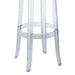 The silhouette-inspired design of this bar stool is a sure attention grabber that coordinates with any color scheme. Constructed from transparent acrylic, this stunner includes non-marking feet that both help protects sensitive floors and stabilize the stool.
