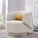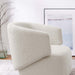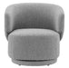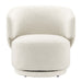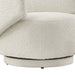 Introduce appreciated texture to a living room, entryway, bedroom, office, or other seating area with the Celestia Boucle Fabric Swivel Chair. Featuring a curved silhouette with angular details, this accent chair abounds in luxe modern style. This swivel chair is upholstered in durable boucle fabric that boasts a charming nubby texture. Dense foam padding offers a premium seating experience while the swivel base allows this upholstered chair to effortlessly rotate to suit the needs of the moment. Comes fully assembled. Weight Capacity: 330 lbs.