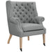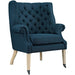 Experience the fine art of leisure with the Chart Lounge Chair. Luxuriously tufted with rolled arms and supportive back, Chart also comes outfitted with front leg casters for easy maneuverability. Always ready for action, Chart is a beautiful accent piece upholstered in fine polyester, dense foam padding, natural wood legs, and an esteemable appeal for vintage, rustic, cabin, contemporary, global, and other eclectic spaces.