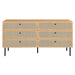 Refresh a bedroom with the textured detail of the Chaucer 6-Drawer Dresser. Featuring beautiful oval rattan on the drawer fronts, this 6-drawer dresser updates a primary bedroom or guest room. Six spacious full-extension drawers offer ample storage space for clothes, linens, and more. Resting on adjustable feet with non-marking pads, this full-size dresser is durably crafted with particleboard and a wood grain laminate to bring natural organic aesthetics to your bedroom decor. Assembly required.