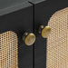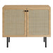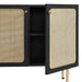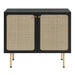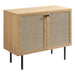 Refresh your living space with the textured detail of the Chaucer Accent Cabinet. Featuring beautiful rattan weaving on the doors, this display cabinet updates a living room, entryway, home office, hallway, bedroom, or lounge area and can also serve as a bar cabinet in the dining room. A spacious shelving area hidden behind the hinged doors offers ample storage space for linens, home decor, china, silverware, barware, and more. Resting on sleek legs with adjustable feet for added stability, this accent cabinet is durably crafted with particleboard and wood grain laminate to bring natural organic aesthetics to your decor. Assembly required. Shelf Weight Capacity: 22 lbs.