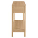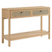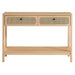Refresh your living space with the textured detail of the Chaucer Console Table. This versatile piece is not just a stunning entryway table but also doubles as a TV console table in your living room. It features an open bottom shelf perfect for display and two spacious full-glide drawers with metal knobs for concealed storage. Enhanced by the beautiful rattan weaving on its drawers, this hall table instantly updates entryways, hallways, reception areas, or living rooms. Resting on sleek legs with non-marking feet for floor protection, the Chaucer sideboard is durably crafted with particleboard and wood grain laminate to bring natural organic aesthetics to your modern living room decor. Assembly required. Table Weight Capacity: 132 lbs; Shelf Weight Capacity: 132 lbs