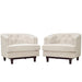 Sale the tide of elegance with Coast. Buoyed with exquisite deep button tufting and fine trim, Coast comes upholstered in polyester with a walnut stained wood leg base with non-marking foot glides. Solidly made with exceptional support, Coast features dense foam cushioning, removable seat covers for easy cleaning and generous seating space. Combining mid-century style with ageless nobility, the Coast armchair is perfect for modern and eclectic living rooms, lounge spaces, and reception areas.