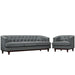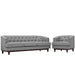 Sale the tide of elegance with Coast. Buoyed with exquisite deep button tufting and fine trim, Coast comes upholstered in polyester with a walnut stained wood leg base with non-marking foot glides. Solidly made with exceptional support, Coast features dense foam cushioning, removable seat covers for easy cleaning and generous seating space. Combining mid-century style with ageless nobility, the Coast Living Room Set is perfect for modern and eclectic living rooms, lounge spaces, and reception areas.