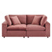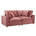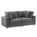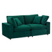 A haven for cozy relaxation, Commix features plush comfort, clean-lined design, and spacious profile, that makes an attractive statement in the modern home. Covered in stain-resistant performance velvet, this upholstered loveseat comes with a solid wood construction and foam padded and duck down cushions for a luxurious sink-in feel. Commix features overstuffed down feather cushions that offer a feeling of relaxation and calming comfort while lounging, making it the perfect addition to the living room, family room, or game room. Made for sprawling out or curling up, Commix beckons you and guests to sit and stay a while. Includes plastic foot glides. Weight Capacity of Each Piece: 331 lbs.