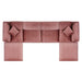 A haven for cozy relaxation, Commix features plush comfort, clean-lined design, and spacious profile, that makes an attractive statement in the modern home. Covered in stain-resistant performance velvet, this upholstered sectional sofa comes with a solid wood construction and foam padded and duck down cushions for a luxurious sink-in feel. Commix features overstuffed down feather cushions that offer a feeling of relaxation and calming comfort while lounging, making it the perfect addition to the living room, family room, or game room. Made for sprawling out or curling up, Commix beckons you and guests to sit and stay a while. Includes plastic foot glides. Weight Capacity Each Chair: 331 lbs.