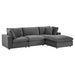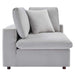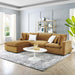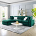 A haven for cozy relaxation, Commix features plush comfort, clean-lined design, and spacious profile, that makes an attractive statement in the modern home. Covered in stain-resistant performance velvet, this upholstered sectional sofa comes with a solid wood construction and foam padded and duck down cushions for a luxurious sink-in feel. Commix features overstuffed down feather cushions that offer a feeling of relaxation and calming comfort while lounging, making it the perfect addition to the living room, family room, or game room. Made for sprawling out or curling up, Commix beckons you and guests to sit and stay a while. Includes plastic foot glides. Weight Capacity Each Chair: 331 lbs.
