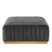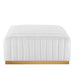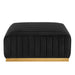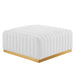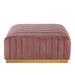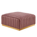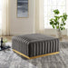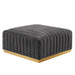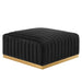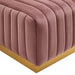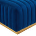 Modern appeal surrounds the Conjure Channel Tufted Performance Velvet Upholstered Ottoman. Luxuriously soft, stain-resistant performance velvet upholstery covers dense foam padding and an individually wrapped spring coil system for a supportive living room ottoman that will become the go-to lounge spot for family and friends. Vertical channel tufting and subtle French piping adds depth to this vintage inspired sectional piece that effortlessly becomes the focal point in your living room. Solidly constructed from wood and plywood, this ottoman features non-marking foot caps and boasts a brushed gold stainless steel base. Versatile and elegant, this sectional sofa piece is ideally suited for a variety of decor styles in your living room, lounge, or home office. Chair Weight Capacity: 331 lbs.
