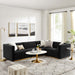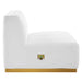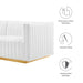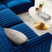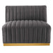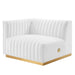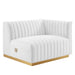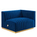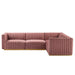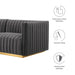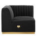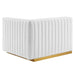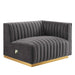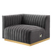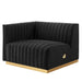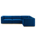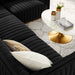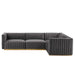 Modern appeal surrounds the Conjure Channel Tufted Performance Velvet Upholstered 4-Piece Sectional Sofa. Luxuriously soft, stain-resistant performance velvet upholstery covers dense foam padding and an individually wrapped spring coil system for a supportive living room sectional sofa that will become the go-to lounge spot for family and friends. Vertical channel tufting and subtle French piping adds depth to this vintage inspired sectional that effortlessly becomes the focal point in your living room. Solidly constructed from wood and plywood, this sofa features non-marking foot caps and boasts a matte black base. Versatile and elegant, this sectional sofa is ideally suited for a variety of decor styles in your living room, lounge, or home office. Each Seat Weight Capacity: 331 lbs.