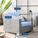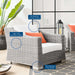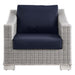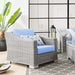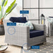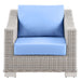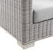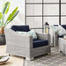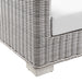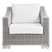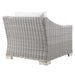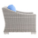 Enjoy fresh air and alfresco relaxation with the Conway Outdoor Patio Wicker Rattan Armchair. Wrapped in UV-resistant light gray synthetic wicker rattan, this patio chair boasts organic texture and a neutral hue that brings a calming presence to your outdoor space. The frame of this outdoor chair is crafted with durable powder-coated aluminum and rests on L-shaped legs with plastic foot glides. Thick foam padded cushions covered with removable, water-resistant polyester covers offer a comfortable seat and affix securely to the lounge chair with cord tension attachments. Trending aesthetics and a classic design define this outdoor patio furniture collection making it a beautiful addition to any outdoor space including the backyard, patio, porch, balcony, or poolside. Assembly required. Patio Chair Weight Capacity: 300 lbs.