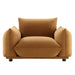 Sink into pillowy plush comfort with the Copious Performance Velvet Armchair. Featuring an overstuffed design, this accent chair offers premium comfort with its plump cushions and soft, stain-resistant performance velvet upholstery. This cozy chair is made for lounging and makes a bold statement in the living room, family room, bedroom, entryway, or other lounge area. Resting atop rubberwood legs with non-marking foot caps, this velvet chair is crafted with dense foam padding and a solid wood and plywood frame for lasting durability. Weight Capacity: 330 lbs.