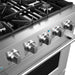 Professionally styled gas range constructed of corrosion-resistant 304-grade stainless steel, with full metal knobs and a matching stainless steel oven door handle