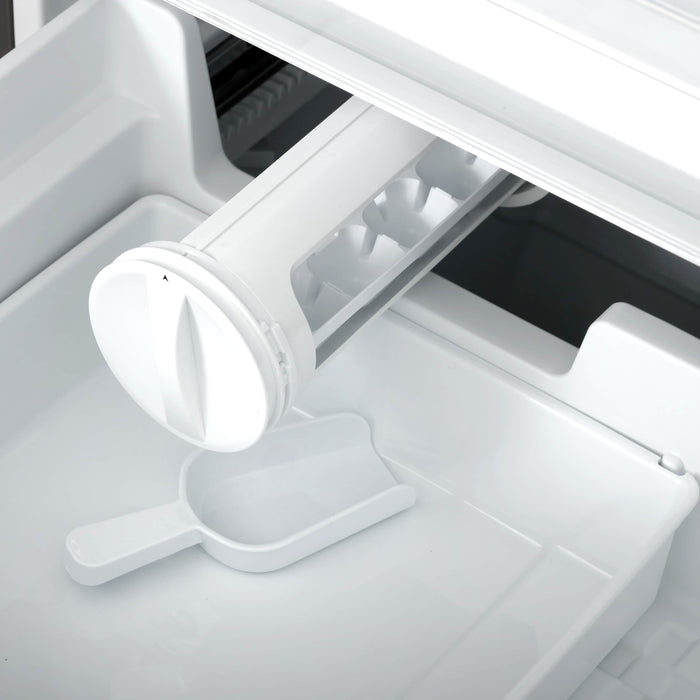 The refrigerator comes with an automated ice-maker with a handy cube holder which transfers cubes into ice tray and scoop
