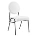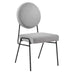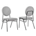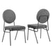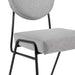 The blended aesthetics of mid-century modern style and the elegance of retro glamour are channeled to create the striking Craft Fabric Upholstered Dining Side Chair Set of Two. Featuring two densely padded foam cushions covered in soft, durable polyester fabric upholstery, these dining chairs are a luxurious seating experience with an open, breathable design. The Craft Accent Chairs sit on an eye-catching matte black stainless steel frame with flared rear legs and non marking foot caps elevating your dining room, lounge room, and office decor. Chair Weight Capacity: 330 lbs. Come fully assembled.
