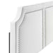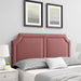 Cultivate an upscale aesthetic in your master bedroom or guest room with the refined Cynthia Performance Velvet King/California King Headboard. The artfully notched upper corners create a gentle silhouette enhanced by precise nailhead trim for an understated elegance that complements mid-century modern, contemporary, or eclectic decors. This upholstered headboard is built on a solid plywood frame and tailored in stain-resistant performance velvet with dense foam padding for added stability and support while sitting up in bed. Bring refinement to your master bedroom with this sophisticated velvet king/Cali king headboard. Cynthia is a height-adjustable king/California king headboard featuring multiple mounting levels.