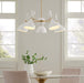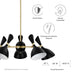 Feel inspired with illuminating bouquets of light in your living room, bedroom, or entryway with the Declare 5-Light Pendant. This modern ceiling light fixture glows with 5 round tapered powder-coated metal shades, enhanced by a narrow satin brass ring, for a bouquet-like silhouette. Sophisticated adjustable shades spark visual interest to this living room chandelier, complementing mid-century modern or eclectic decors. The Declare ceiling pendant light is fully dimmable and height adjustable in your dining room or above a kitchen island. Requires 5 E26 bulbs, 40W max, or LED equivalent (not included). Compatible with dimmer switches (not included). Professional installation required.