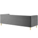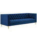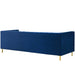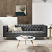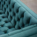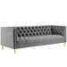 Ease into the welcome embrace of the Delight sofa. Featuring a deep seating surface surrounded by diamond patterned deep button tufting creates a luxurious, vintage glamour. Soft, stain-resistant performance velvet upholstery covers supportive dense foam padding for a luxurious seating experience. Delight features a unique modern feel that elevates the decor in any living room or lounge area. Solidly constructed, Delight rests securely on four gold stainless steel legs.