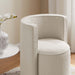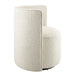 Stunning from every angle, the Della Boucle Swivel Chair brings textured charm and tailored elegance to your living room, entryway, bedroom, office, or other seating area. This boucle accent chair makes a statement with modern lines, French piping trim, and subtle channel tufting along the backrest. Featuring dense foam padding, this swivel chair is upholstered in beautifully textured boucle fabric offering a premium seating experience. This accent chair rests on a matte black iron base that features non-marking foot caps to protect your flooring and swivels 360ΒΊ to survey your surroundings. Weight Capacity: 330 lbs.