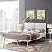 Sleep soundly with the Della Platform Bed. With a touch of charm and delight, Della’s paired headboard design imparts a refreshing look while a reinforced steel frame admirably supports from beneath. Complete with a rod system that eliminates the need for a box spring, Della serves the various mattress types on the market such as memory foam, spring, latex and hybrid, and sustains a weight capacity of up to 1300lbs. Della’s paired headboard comes finely upholstered in vinyl with a base that features non-marking foot caps. Durable and sturdy, Della is a bedroom anchor fitting for the modern home. Mattress Not Included.