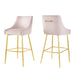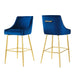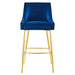 The dashingly handsome Discern Performance Velvet Bar Stool brings substance and charisma into your dining space. Standing confidently on brushed gold stainless steel legs braced by a matching stretcher, the Discern Bar Stool enthralls with subtle details and a stylish retro modern vibe that fits well with mid-century modern decor. Stain-resistant performance velvet upholstery envelopes the seat and backrest of this bar-height stool, perfect for a pub table or kitchen bar. The curved armrest and precise tailoring signal an attention to detail that makes this velvet bar stool irresistible. The Discern Bar Stool features protective foot pads, a decorative handle, and dense foam padding.