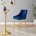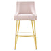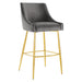 The dashingly handsome Discern Performance Velvet Bar Stool brings substance and charisma into your dining space. Standing confidently on brushed gold stainless steel legs braced by a matching stretcher, the Discern Bar Stool enthralls with subtle details and a stylish retro modern vibe that fits well with mid-century modern decor. Stain-resistant performance velvet upholstery envelopes the seat and backrest of this bar-height stool, perfect for a pub table or kitchen bar. The curved armrest and precise tailoring signal an attention to detail that makes this velvet bar stool irresistible. The Discern Bar Stool features protective foot pads, a decorative handle, and dense foam padding.
