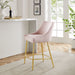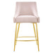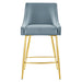 The dashingly handsome Discern Performance Velvet Counter Stool brings substance and charisma into your dining space. Standing confidently on brushed gold stainless steel legs braced by a matching stretcher, the Discern Counter Stool enthralls with subtle details and a stylish retro modern vibe that fits well with mid-century modern decor. Stain-resistant performance velvet upholstery envelopes the seat and backrest of this counter-height stool, perfect for a pub table or kitchen counter. The curved armrest and precise tailoring signal an attention to detail that makes this velvet counter stool irresistible. The Discern Counter Stool features protective foot pads, a decorative handle, and dense foam padding.