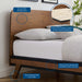 Reinvent your bedroom decor with the Dylan Queen Platform Bed. Abounding in mid-century style and contemporary modern design, this queen size bed features beautiful wood grain detail and rounded edges. With fabric upholstery lining the frame, this platform bed is crafted with MDF and wood grain veneer to create its stunning organic aesthetic. The wood slat support system eliminates the need for a box spring and encourages ample air circulation to your mattress. A lasting mattress foundation, this platform bed is complete with a reinforced center beam, support legs, and felt foot pads to protect your flooring. This queen bed accommodates the various mattress types on the market such as memory foam, spring, latex, and hybrid. Mattress not included. Weight Capacity: 800 lbs.