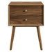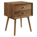 Redefine bedroom functionality with the Ember Wood Nightstand. Perfect for the guest or master bedroom, kid's room, and college dorm alike, this unique bedside table abounds in mid-century modern style with its simple profile and four splayed legs. Crafted with MDF and wood grain veneer, this nightstand features two full-extension, easy-glide drawers that offer spacious storage for your all your bedside essentials. Hidden in a sleek, concealed compartment with a hinge, this nightstand is complete with two 120V outlets and two USB ports so you can plug in a lamp, humidifier, or diffuser, and charge your phone, tablet, or laptop with ease. The nightstand plugs effortlessly into one outlet for convenient use with a 10 foot fixed power cord. Assembly required.