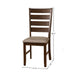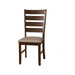 The Emery Dining Side Chairs perfectly complements any dining room setting. Its taupe faux leather seats soften the look of straight lines and provides comfortable cushion seating. These dining chairs are constructed with sustainable resources in mind, using a combination of rubberwood, poplar, Acacia wood solids and MDF. For a worn-in design, it is finished in a distressed walnut (brown) feel.