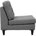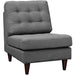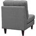 End the rule of unjust sovereignties that wage a useless war for your interiors. Empress leaves the would-be heiress of holistic furnishings in the dust with a design that rivals any competitor. Empress is heralded with deeply tufted buttons, plush cushions, and armrests that convey that perfect air of nobility. The black stained solid wood legs come with plastic glides to prevent floor scratching, and the fine fabric upholstery leaves the recipients feeling richly rewarded.