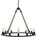 Cruise on a light-filled course with the Encircle Chandelier. Supported by four rope cords with steel hooks, and adorned with a magnificent array of twelve bulbs, Encircle takes you from one lap in the journey to the next with distinction. Held by an adjustable steel chain, and designed to imbue momentum over your entire dining room, dine amongst friends and family while seated in front of this radiant tour of positivity. The Encircle Chandelier works best in rustic, ranch, vintage modern, industrial modern, and other transitional décors.