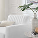 Gently sloping curves and plush seat cushion create a favorite lounging spot. Whether relaxing after a long day at work, settling in with coffee and brunch, or entering a spirited discussion with friends, the Engage Armchair is a welcome presence in your home. Channel tufting creates eye-catching appeal, adding depth that brings your sitting décor to center stage. The black painted rubberwood legs and frame offer a solid base for the soft yet durable polyester fabric upholstery.
