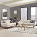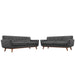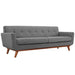 Gently sloping curves and large dual cushions create a favorite lounging spot. Whether plopping down after a long day at work, settling in with coffee and brunch, or entering a spirited discussion with friends, the Engage sofa is a welcome presence in your home. Seven tufted buttons create eye-catching appeal, adding depth that brings your sitting dΓ©cor to center stage. Four cherry color rubberwood legs and frame supply a solid base to the comfortable upholstered material.