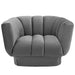 Energize your living room decor with Entertain. Sit deeply in tactile luxury with vertical channel tufting that creates visual depth and a magnificent waterfall effect that spans the length of this vintage glamour armchair. Entertain features plush dense foam padding with soft, stain-resistant performance velvet upholstery for a luxurious seating experience that delivers premium comfort. Entertain can support up to 300 lbs and rests securely on a rimmed base covered in matching velvet. Introduce this cozy, extra wide retro-modern centerpiece to your living room or lounge area.
