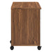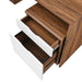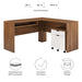 Elevate your office decor with the Envision Desk and Filing Cabinet. Designed to encourage focus and productivity, this L-shaped desk and rolling file cabinet features a particleboard and MDF construction with walnut wood grain laminate and white laminate drawer fronts. Complete with a pull-out keyboard tray, this desk offers ample workspace on its spacious surface making it ideal for almost any work setup including those with dual monitors. Resting on four plastic casters for easy maneuverability, this office cabinet effortlessly glides underneath the L-shaped office desk. This file cabinet is complete with a spacious upper drawer for storing office essentials and a deep lower drawer designed for filing system organization. Weight Capacity: 330 lbs.