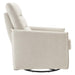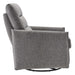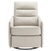 Sit back and stay awhile in the Etta Lounge Chair. Upholstered in soft fabric, this modern sofa chair features a thoughtfully designed double backrest with horizontal channel tufting, enveloping you in comfort and style. Crafted with a solid wood and MDF frame and filled with high-density foam and soft upholstered polyester fabric, this armchair beckons you to sit back and relax. Its unique metal swivel and glider base allows for easy movement, ensuring you can find the perfect angle for relaxation. Though not a traditional recliner, the Etta living room chair is artfully designed to provide a permanent reclined position that's perfect for reading, lounging, or simply unwinding. Its thin armrests add to its modern design and minimalist aesthetic. Whether placed in a living room, lounge area, or bedroom, the Etta Lounge Chair is the ultimate invitation to sit, settle in and make yourself comfortable. Assembly Required