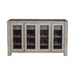 Introducing the Fallon Sideboard, a stunning handcrafted piece made from pine solids and veneers. The beautiful gray finish highlights the natural grain of the wood, creating a timeless and sophisticated look. The ends of the sideboard feature an inset black faux metal with distinctive bolt detail, providing an industrial touch to the overall design. The door panels feature fashionable mesh insets, adding a unique texture to the piece. With 2 functional interior drawers and reversible shelves with wine storage, this sideboard provides ample storage for all your dining essentials. And the best part? The Fallon Sideboard ships fully assembled, so you can start enjoying it in your dining space right away. Upgrade your dining room with the Fallon Sideboard and enjoy a one-of-a-kind piece that seamlessly blends rustic and industrial design elements.