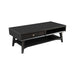 Lend your living room layout a little Mid-Century modern flair with this clean-lined piece. Found atop four splayed legs, the Flynn cocktail table is crafted from Mahogany wood solids and Okume veneer. The felt lined drawer offers out-of-sight storage for odds and ends while the rectangular top provides a place to spread out snacks, magazines, and more. The drawer is on a 2-way slide allowing easy access from either side of the table and there is an open shelf for additional storage. The black finish is versatile enough to complement most color palettes. Mix and match with other pieces from the Alpine Furniture Flynn collection.
