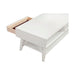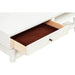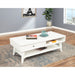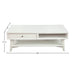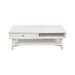 Lend your living room layout a little Mid-Century modern flair with this clean-lined piece. Found atop four splayed legs, the Flynn cocktail table is crafted from Mahogany wood solids and Okume veneer. The felt lined drawer offers out-of-sight storage for odds and ends while the rectangular top provides a place to spread out snacks, magazines, and more. The drawer is on a 2-way slide allowing easy access from either side of the table and there is an open shelf for additional storage. The white finish is versatile enough to complement most color palettes. Mix and match with other pieces from the Alpine Furniture Flynn collection.