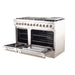 The 48” Galiano Dual Fuel Range brings professional styling and quality into your home kitchen with its durable stainless-steel design. Cooktop has 8 sealed burners with a total stove top output of 107,000 BTU. This unit is ready to handle all your pots and pans with ease over it’s continuous cast-iron grate design. The cumulative capacity 6.58 cu. ft. double ovens with a total output of 9,800 Watts are encased in a black enameled interiors. Right oven is fitted with a true convection fan. Thermostat and regulator ensures to achieve fast, precision and consistent oven cooking along for easy viewing are 3-layer glass oven door windows on both ovens, Included are 4 electroplated oven racks, reversible griddle, and LP conversion kit. Housed in a high-grade stainless steel body and zinc coated metal knobs and bezels, this unit sports a stylish look that is built to last. All Forno products are backed by an iron clad 2-year warranty for your satisfaction. Skip the high price tags without sacrificing quality and performance. Lower the cost of living with Forno.