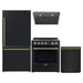 FORNO 4-Piece Appliance Package- 30-Inch Electric Range, Under Cabinet Range Hood, 31-Inch Refrigerator, and Built-In Dishwasher in Black with Antique Brass Trim (FBDL-006-02US)