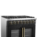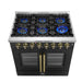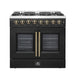 Forno Galiano 36-Inch French Door Dual Fuel Range with 6 Gas Burners and 5.36 Cu.Ft. Electric Convection Oven in Black with Antique Brass Trim (FFSGS6356-36BLK)