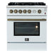 Forno Giovanni 30-Inch Gas Range with 5 Burners and 4.32 Cu.Ft. Convection Gas Oven with Temperature Gauge in White with Antique Brass Trim (FFSGS6274-30WHT)