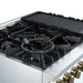 Durable cast iron grates provide cookware stability and ensure smooth movement across the cooking surface.
