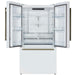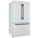 The Rivello 36 Inch French Door Refrigerator in White with Antique Brass handles offers spacious, energy-efficient cooling with a sleek, smudge-resistant finish. The adjustable fresh food shelves and transparent door bins make it easy to organize your groceries, while the internal water dispenser and filtered ice system deliver convenience without cluttering the exterior. A full-width freezer drawer with removable ice bin and fast freeze function keeps frozen foods accessible and fresh. This automatic defrost, frost-free fridge is Energy Star certified and built for freestanding installation, making it a practical choice for modern kitchens.