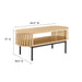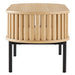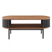 The Fortitude Coffee Table brings modern style to your living room. Its sleek oval shape and open timber style strip design create a spacious feel, while the round metal legs add an industrial touch. Made from MDF and particleboard with a wood grain finish, this coffee table is both sturdy and stylish. Perfect for holding drinks, magazines, or decorative items, this coffee table is an ideal addition to your living room, office, lounge, or other seating area. Includes non-marking foot caps. Assembly required.