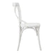 Introduce feelings of nostalgia as you gather around the dining table for a quick breakfast or dinner with friends with the Gear Dining Side Chair. Blending farmhouse charm with modern style, this dining chair features an X-brace back and stretchers between splayed legs. With non-marking foot caps to protect flooring, this side chair is durably crafted with durable elm wood for a sturdy construction built to last. Make a statement in your dining space or kitchen nook with this versatile wood dining chair that can also be used as an accent chair in a living room or desk chair in a home office. Weight Capacity: 330 lbs.