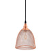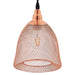 Introduce chic illumination with the Glimmer Bell-Shaped Rose Gold Pendant Light. Suspended by an adjustable two-core braided cable and flush wall mount, this modern ceiling light fixture casts a beautiful golden glow in the living room, entryway, bedroom, kitchen, or dining room. A conversation starter, Glimmer boasts a bell-shaped metal wire shade with diamond cutouts and a plated rose gold finish that complements a variety of contemporary home decor themes. Glimmer requires one E26 60W light bulb (not included).